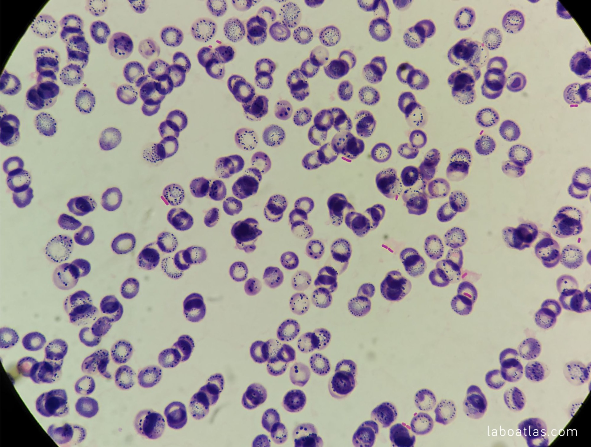 Mycobacterium phlei (bacteria ácido-alcohol resistente, se tiñe con Ziehl-Neelsen).