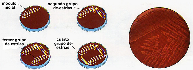 El procedimiento es exactamente igual al anterior, solo que al usarse una asa de siembra metálica, tiene dos pasos extra.